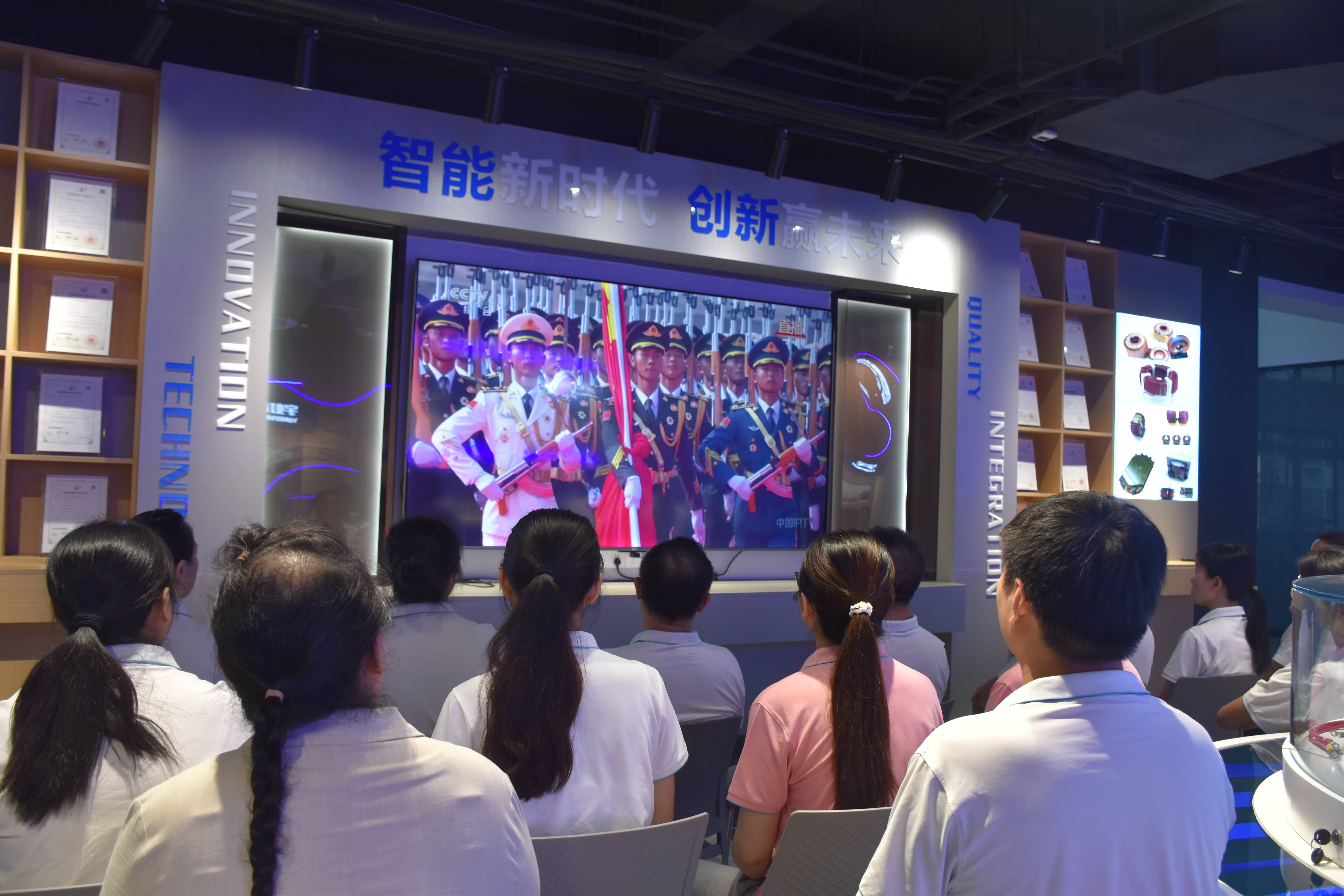 9月3日,为纪念中国人民抗日战争暨世界反法西斯战争胜利80周年,宇虹科技组织广大职工集中观看九三阅兵,公司党支部书记、总经理王俊文、各部门负责人、党员干部等30余名职工代表共同观看了阅兵式直播。